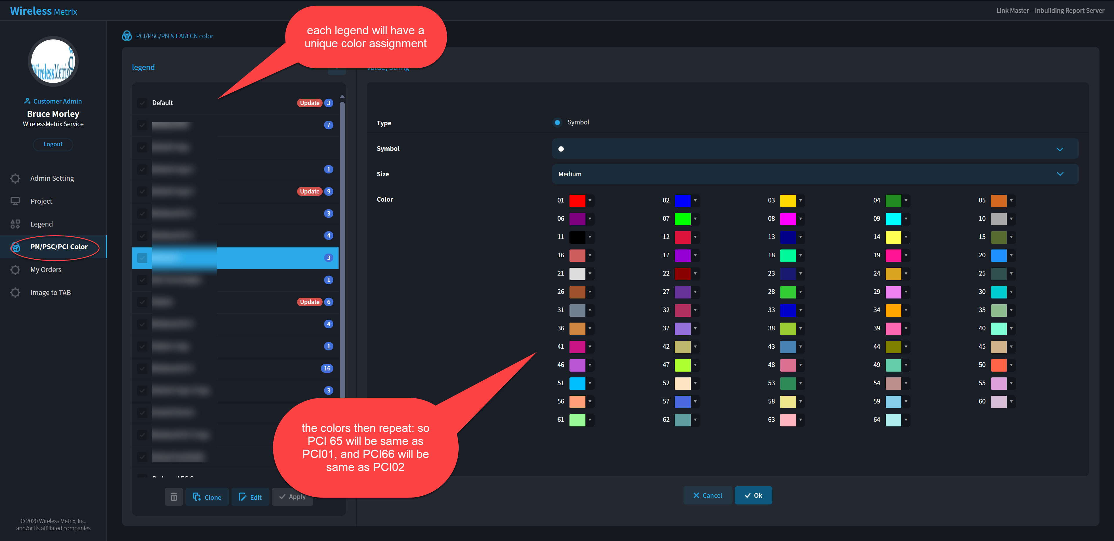 The PCI colors are assigned based on a periodic rotation of colors.