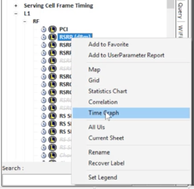 Let's say you have multiple log files open, and you're displaying the same parameter for multiple measures. As an example, we are showing two RSRP time graphs in the workspace below: