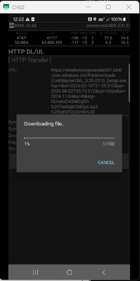 (throughput, latency, packet loss, etc.) to LML via the Android Debug Bridge
